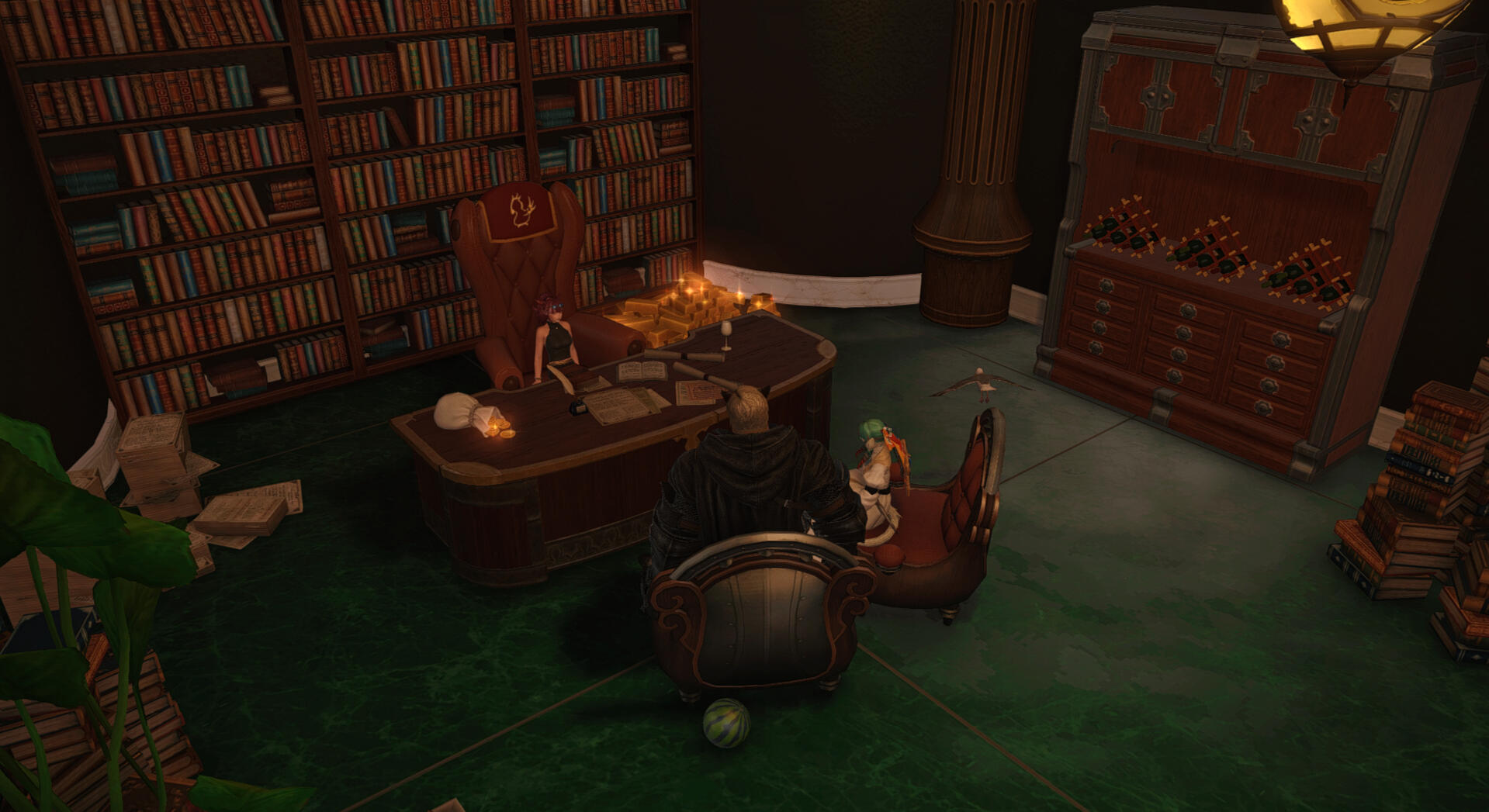 Hi, we're the Glee Club! We're a private FC from Goblin notorious for hosting really funny and unusual parties. We spent nearly a year doing market research in the Crystal Data Center, attending countless venues, restaurants, parties, and events trying to figure out how to make roleplaying in Final Fantasy XIV less daunting and more accessible to our friends and followers with less experience engaging with community-based imaginative play. Our bottom line is that we want to create an environment that's comfortable for everyone and a ton of fun to watch as it is to participate in. We hope you have a great time in our house!